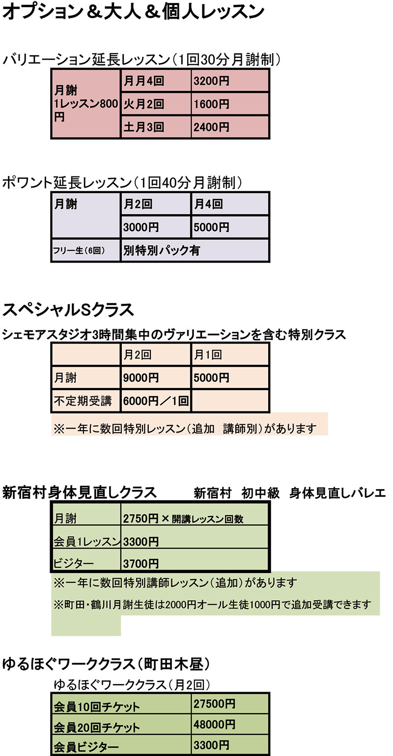また、大人のバレエクラスの方々は「グレース」。人生に、さらに優雅、優しさ、品位を追求される大人の方々に尊敬を持って。